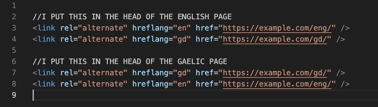 - The hreflang set-up for bilingual pages